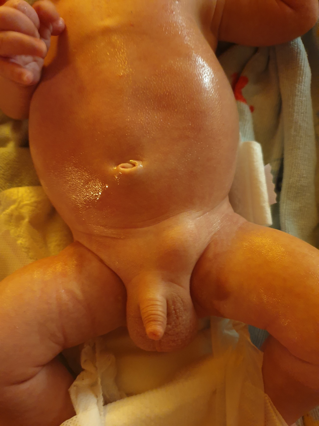 Η έξοδος εκκρίματος από τον ομφαλό κατά την νεογνική περίοδο προκαλεί έντονη ανησυχία τόσο στους γονείς, όσο και στους ιατρούς. Η συχνότερη αιτία είναι το κοκκίωμα του ομφαλού, μια κοινή φλεγμονώδης αντίδραση στο απορροφούμενο υπόλειμμα του ομφάλιου λώρου, η οποία θα πρέπει να υποχωρήσει την 2η ή 3η εβδομάδα της ζωής με εφαρμογή αντισηπτικών.