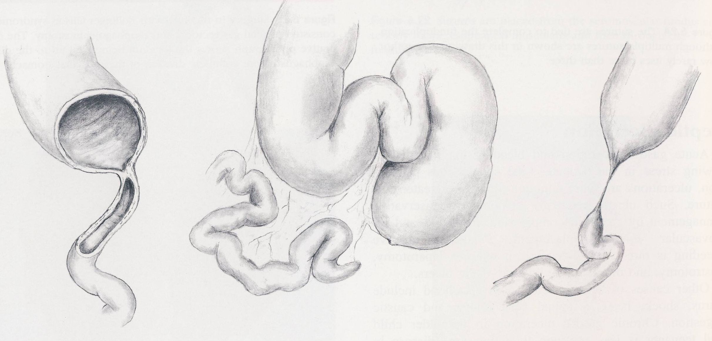 Οι ατρησίες του λεπτού εντέρου οφείλονται σε κάποιο αγγειακό επεισόδιο (διακοπή της παροχής αίματος σε κάποιο τμήμα του εντέρου), που συνέβη ενδομητρίως, όπως απέδειξαν οι Louw και Barnard το 1955.