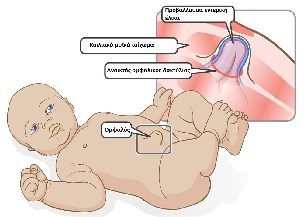 Μεταξύ της 6ης και της 10ης εβδομάδας της κύησης, οι εντερικές έλικες, λόγω της γρήγορης αύξησής τους δεν χωράνε στην κοιλιά και εξέρχονται μέσα στον ομφάλιο λώρο, από όπου επιστρέφουν την 10η εβδομάδα.