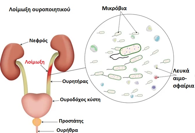 Τα ούρα που παράγονται από έναν φυσιολογικό νεφρό είναι στείρα, ελεύθερα μικροβίων, μέχρι τη στιγμή που πλησιάζουν στο έξω στόμιο της ουρήθρας. Τα μικρόβια μπορούν να φθάσουν στο ουροποιητικό είτε ανιόντως από την ουρήθρα, είτε με αιματογενή διασπορά. Η τελευταία περίπτωση μπορεί να συμβεί κατά την διάρκεια βακτηριαιμίας και έχει ως συνέπεια την ανάπτυξη αποστημάτων στο φλοιό του νεφρού ή στο περινεφρικό λίπος. Ο συχνότερος όμως τρόπος, είναι η ανιούσα λοίμωξη, κατά την οποία μικρόβια που εισέρχονται από το έξω στόμιο της ουρήθρας (από τα μικρόβια των κοπράνων που υπάρχουν στο δέρμα του περινέου ή τα μικρόβια του προδρόμου του κόλπου), προχωρούν κατά μήκος της ουρήθρας και φθάνουν στην ουροδόχο κύστη, τους ουρητήρες και τη νεφρική πύελο. Το σημαντικότερο στοιχείο που ευνοεί την ανάπτυξη λοίμωξης, είναι η ύπαρξη ανατομικού ή λειτουργικού κωλύματος, που εμποδίζει την ομαλή ροή των ούρων. Ανεμπόδιστη ροή και μεγάλος όγκος ούρων, πλήρης κένωση της κύστης και όξινο pH ούρων, αποτελούν το σημαντικότερο μηχανισμό αντιμικροβιακής άμυνας του ουροποιητικού.
